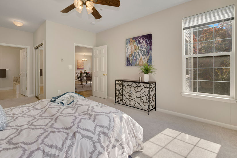 The luxurious primary bedroom suite offers three oversized windows, a dressing area with two large closets, and a huge primary bath with dual vanity, soaking tub, and separate shower. The second bedroom is also spacious, and the large Den makes for a great office or additional bedroom space. The secondary bedrooms are served by a spacious hall bath with newly installed custom tile floor. The private garage space, accessed by a private stairwell within the unit, is incredibly convenient and sets this condo apart from the competition.