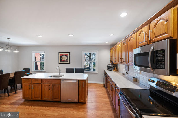 Updated kitchen sports large center island, quartz countertops, stainless appliances & trendy backsplash. Brand new flooring on the main level & fresh paint on lower level.