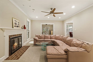 Upstairs you will find a spacious and inviting primary suite with wood burning fireplace, dressing area with custom built-ins, and a large walk-in closet. The primary bathroom was gut renovated in 2016 as well and features a large dual vanity, high-end jacuzzi tub, and luxurious no-barrier entry shower with body jets, rain heads, and customizable controls.